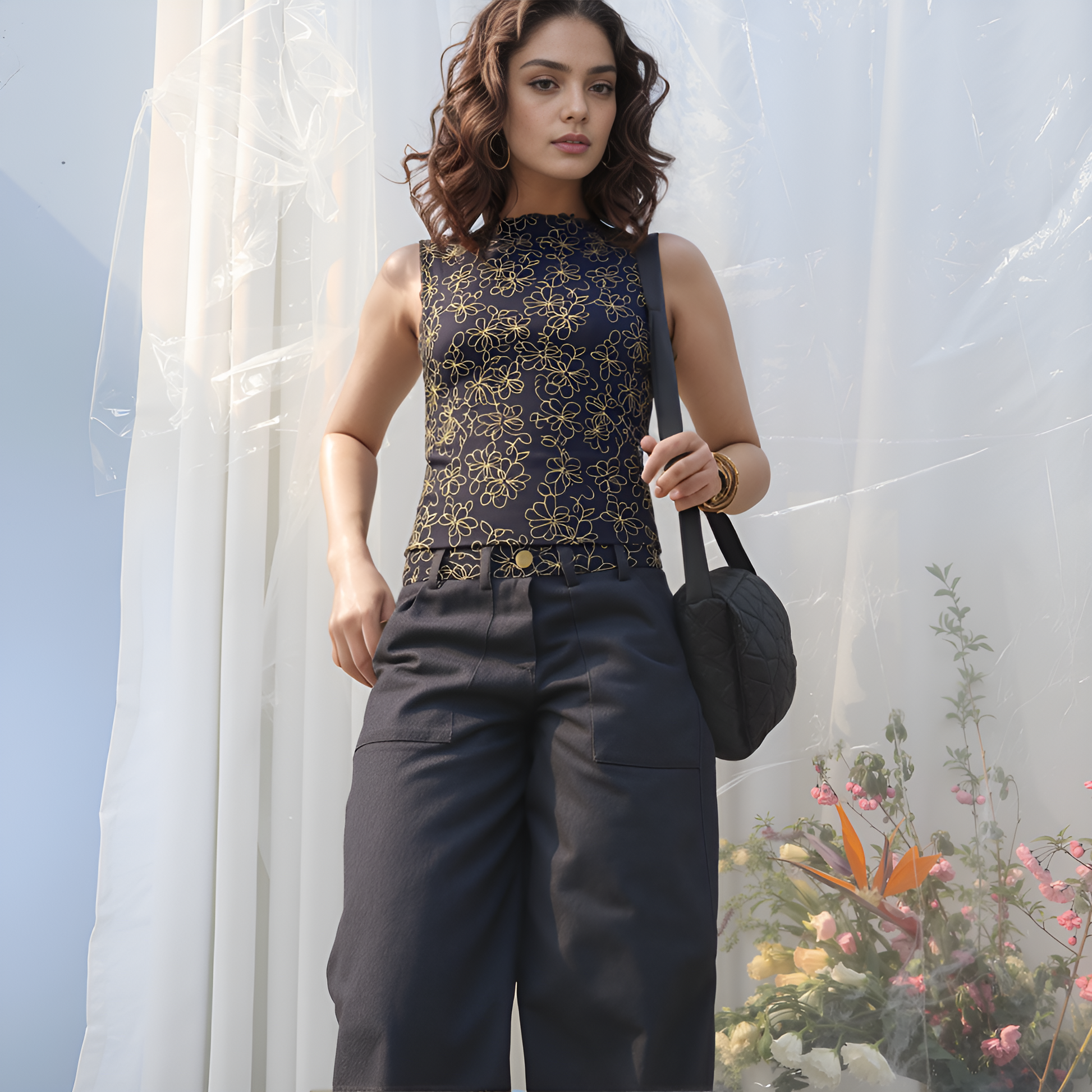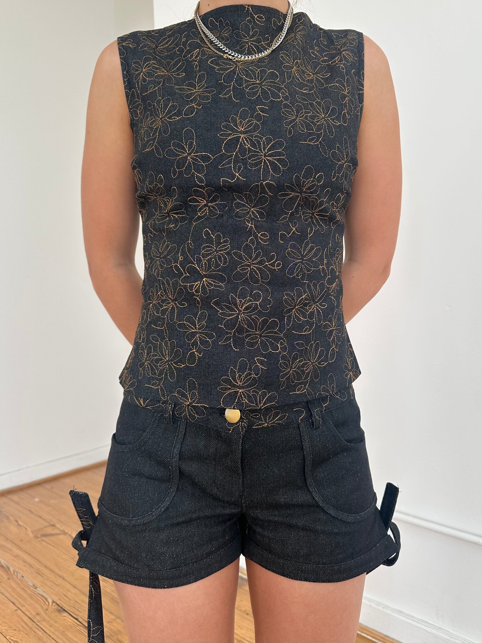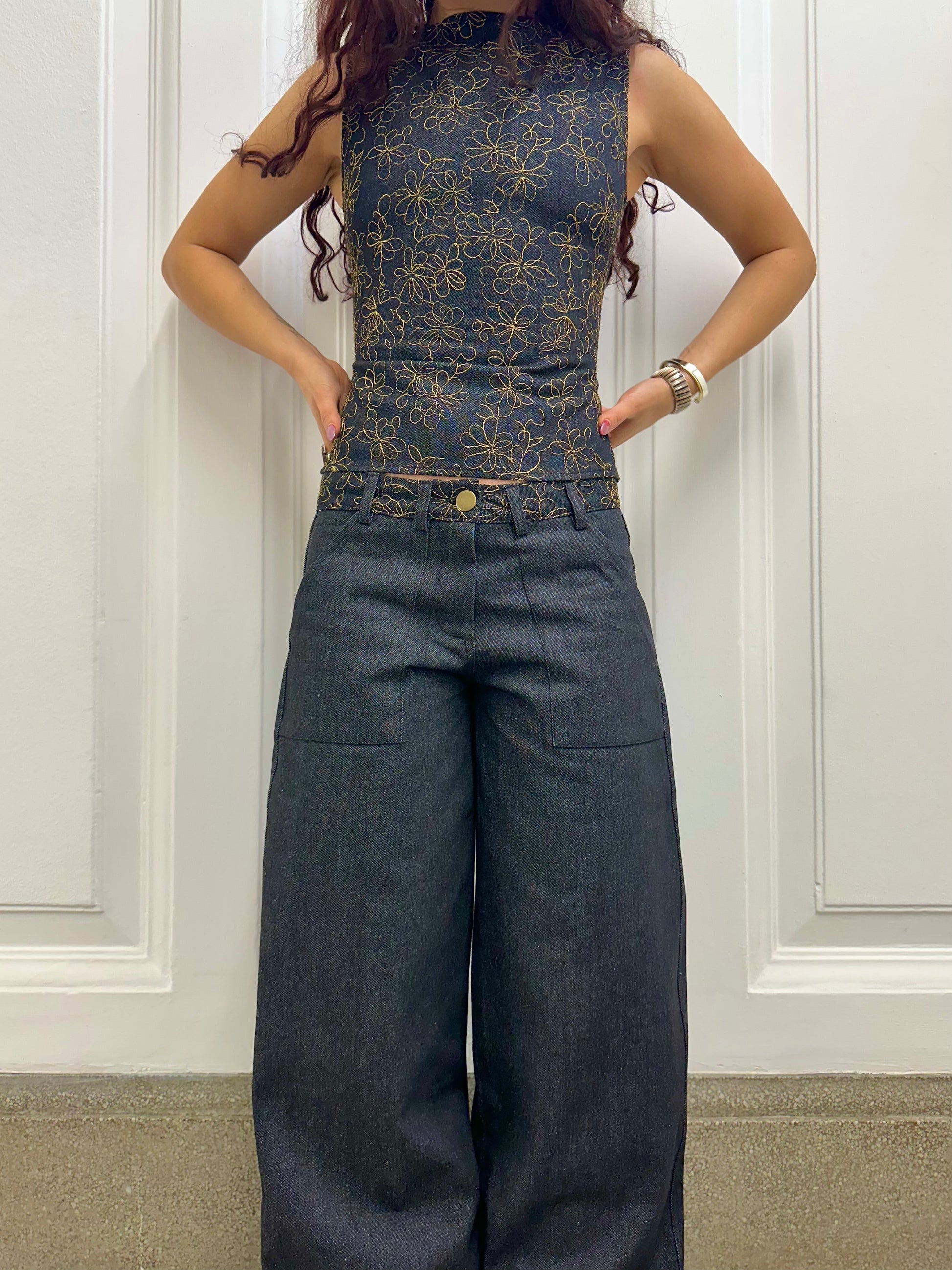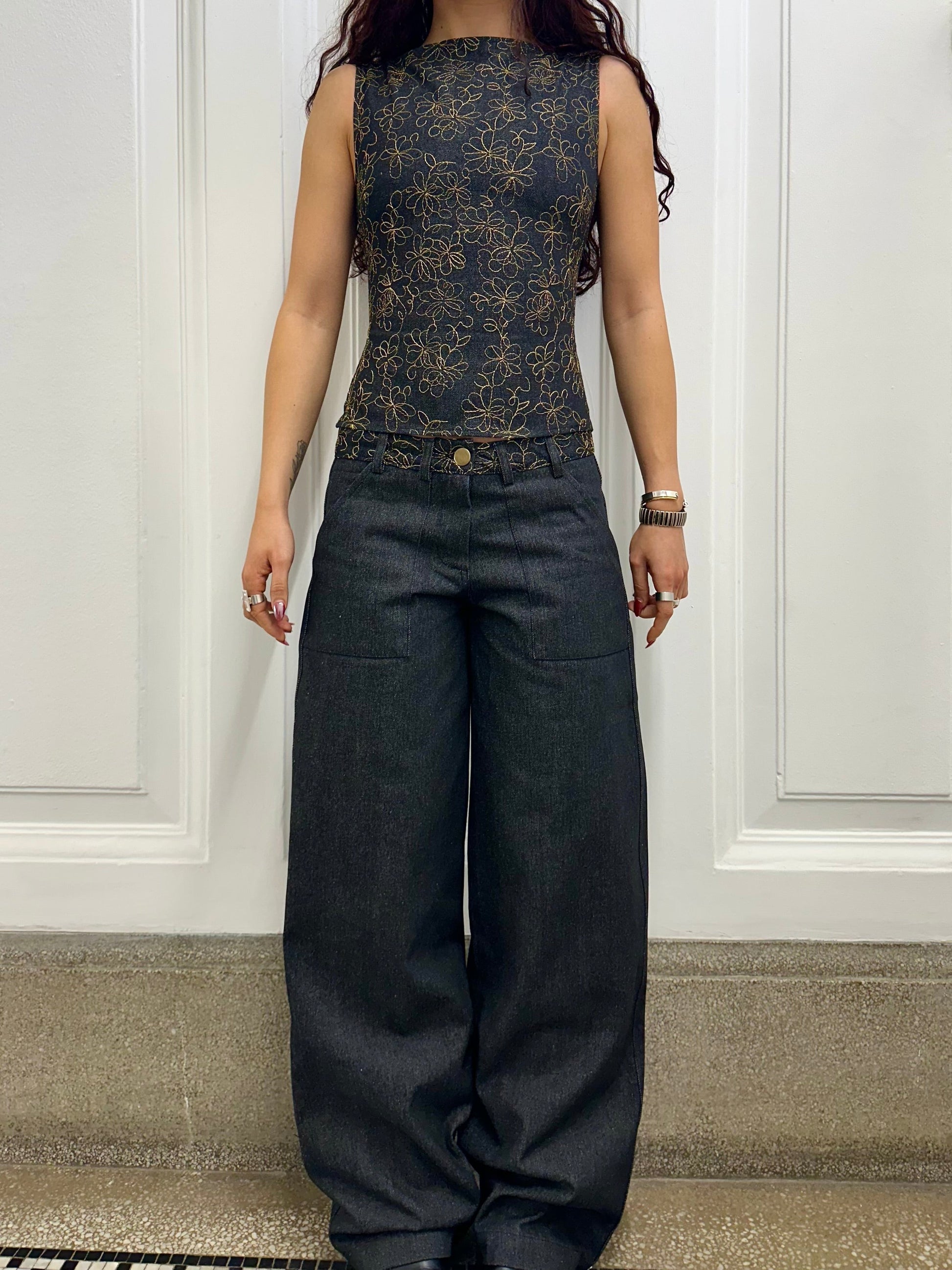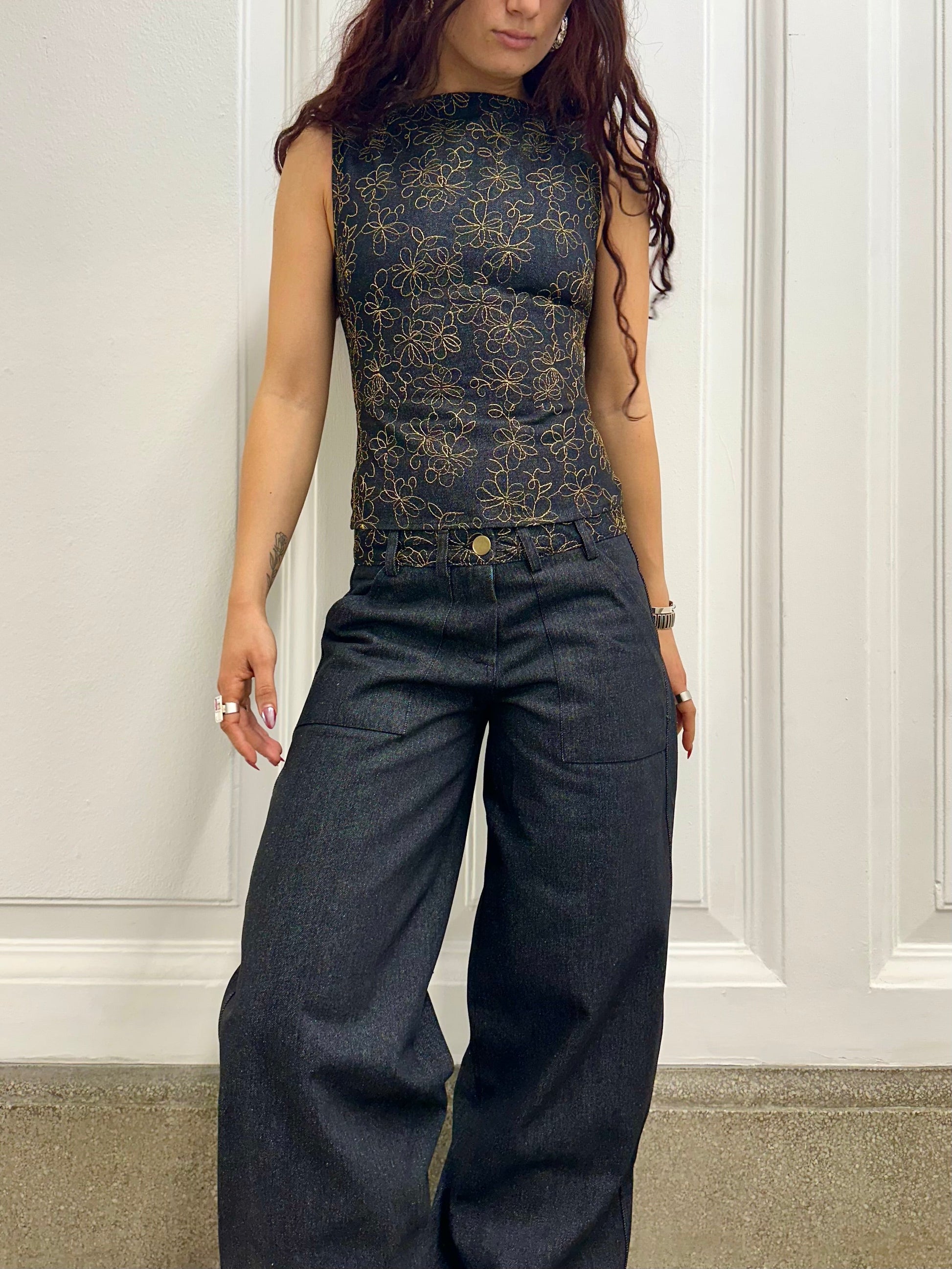 De Charlie top combineert klassieke denim duurzaamheid met delicate borduurkunst voor een veelzijdig kledingstuk dat zowel casual als gekleed gedragen kan worden. Gemaakt van premium charcoal denim dat met elke wasbeurt zachter wordt, biedt deze top een perfecte balans tussen comfort en stijl.